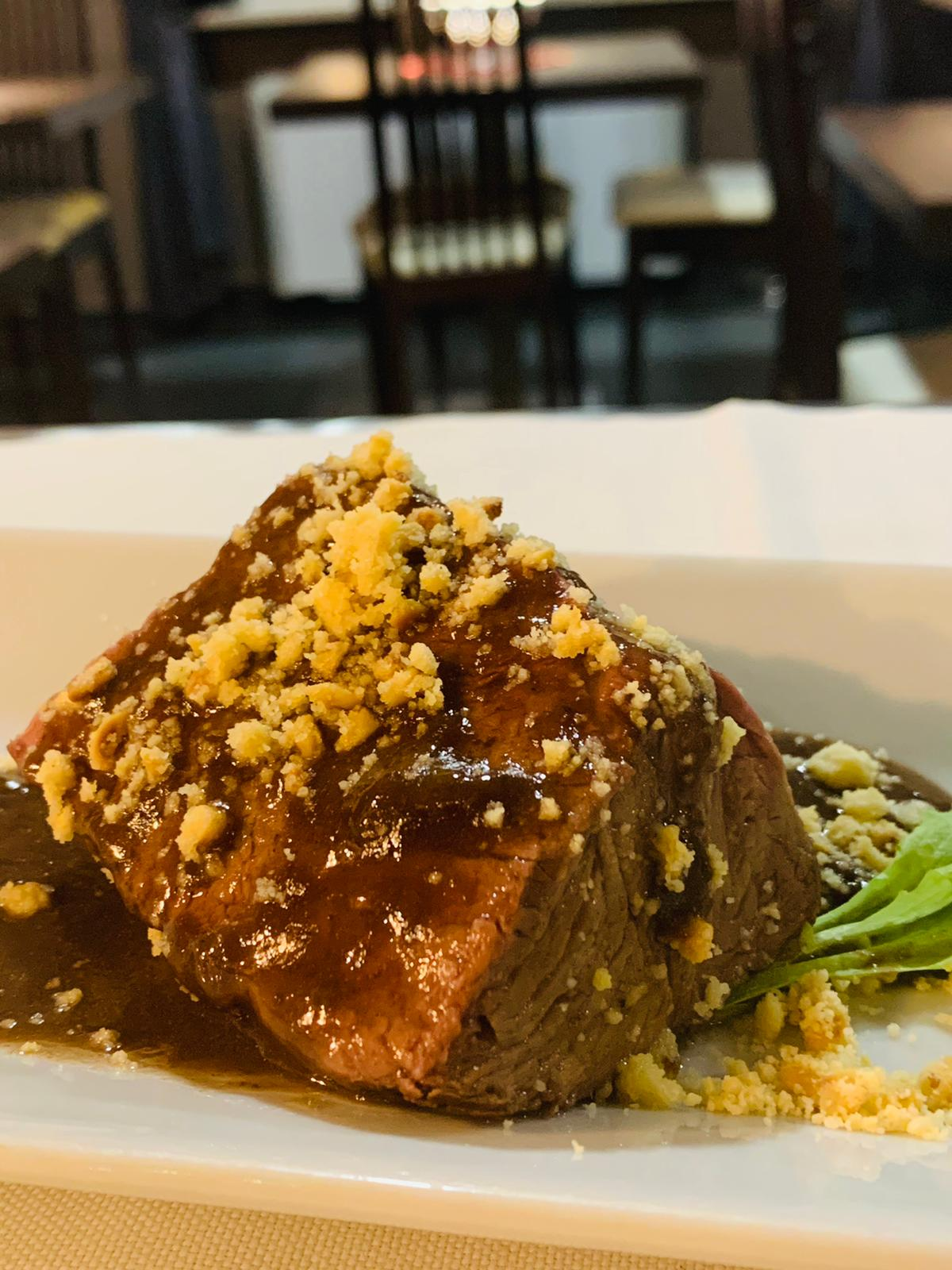 Biancostato di manzo, tenero e succulento, brasato al Nebbiolo, accompagnato